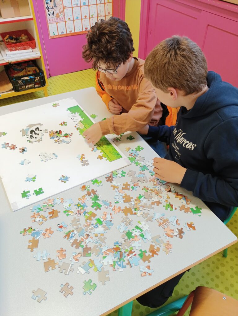 12h30 – 13h selon les jours : ateliers d’activités pédagogiques proposés par les enseignantes ou choix entre jeux libres, jeux de société, activités manuelles.